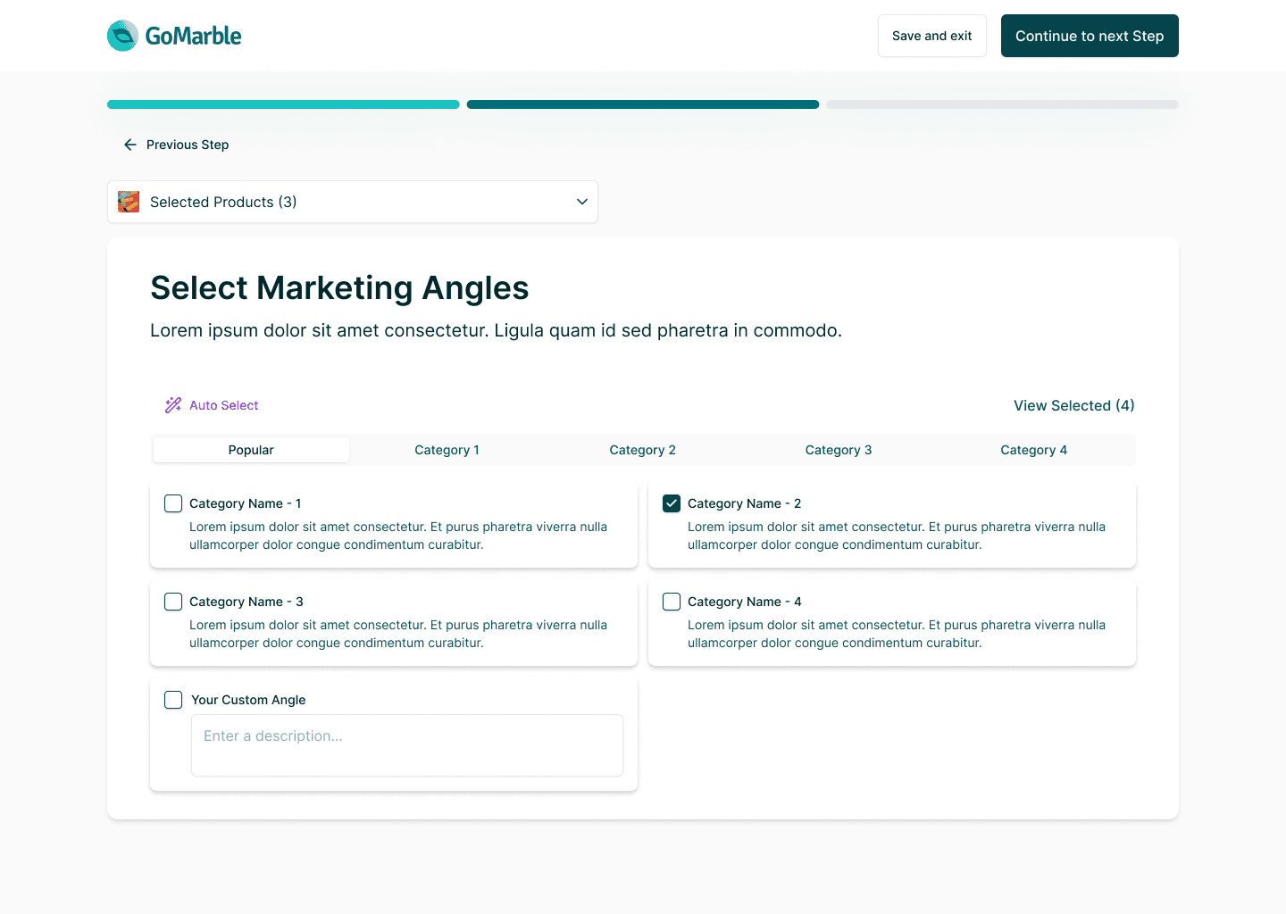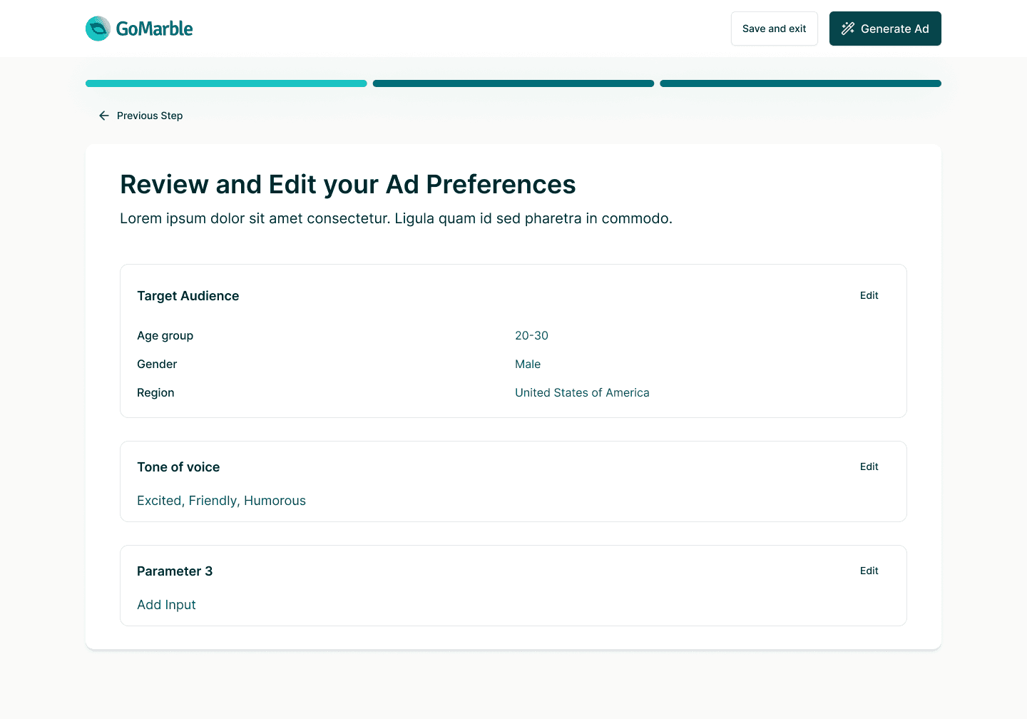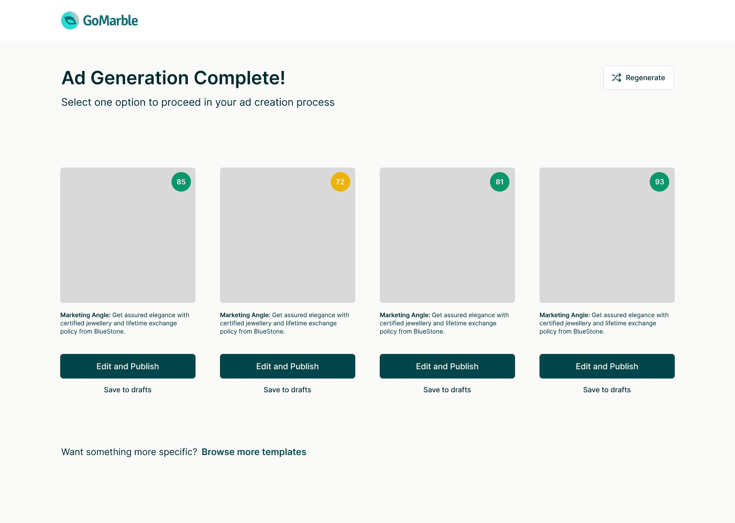 During my UI Design internship at GoMarble AI, I played a key role in enhancing user experience through intuitive design solutions. I developed detailed wireframes and responsive designs for a website overhaul, ensuring seamless usability across devices. Additionally, I contributed to the design of the AI Ad Creation Tool and AI Copy Generator, streamlining workflows for users. My work extended to crafting engaging illustrations and animations for the website and marketing campaigns, driving increased user interaction and brand engagement.